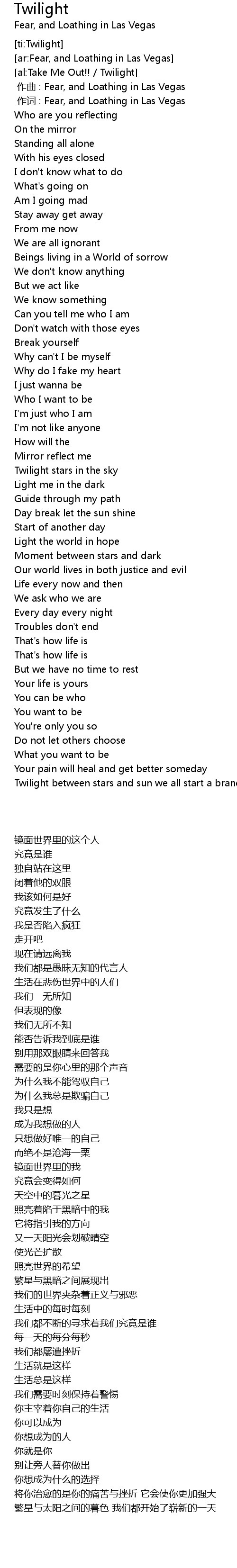 | [00:01.00] | 作词 : Fear, and Loathing in Las Vegas |