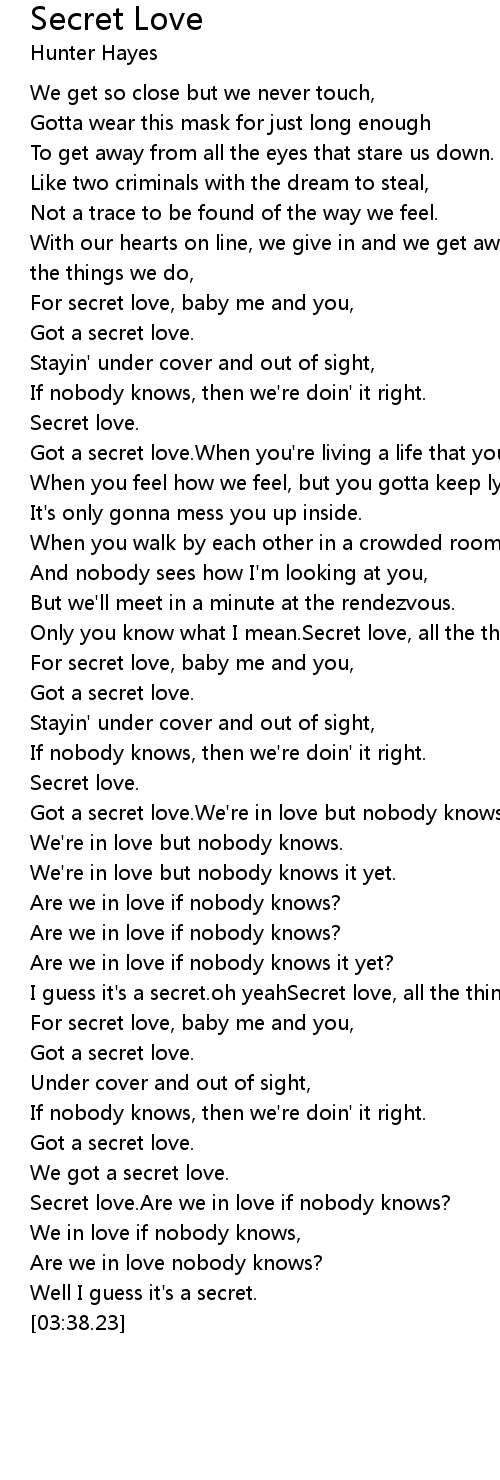 Got a secret love.We're in love but nobody knows. |