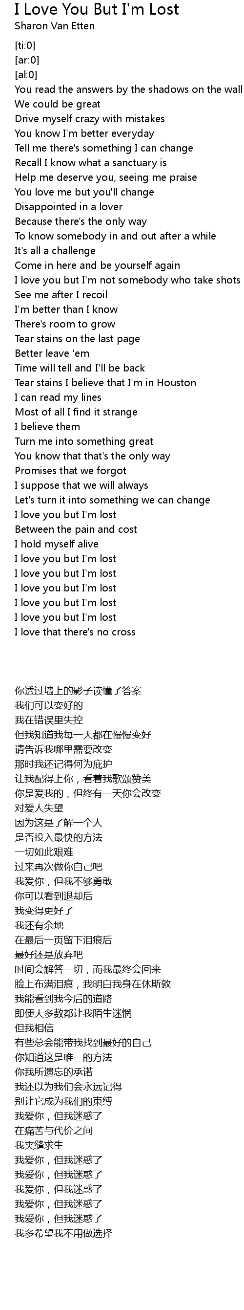 I Love You But I'm Lost Lyrics