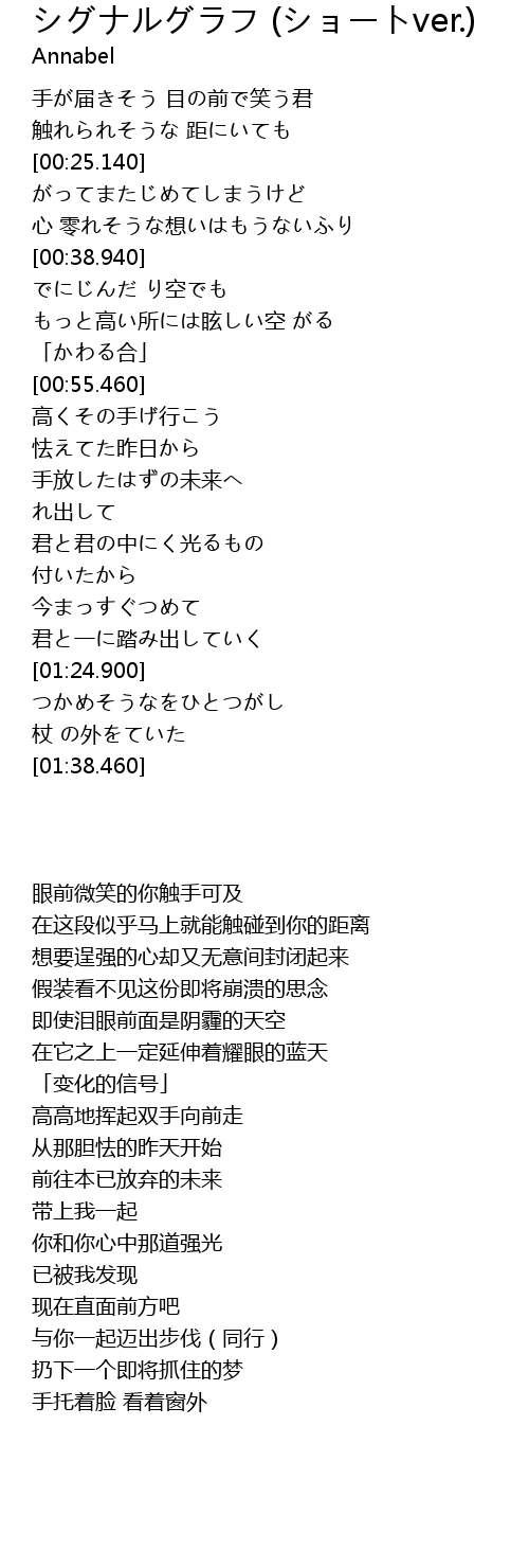 | [00:15.940] | 手が届きそう 目の前で笑う君 |