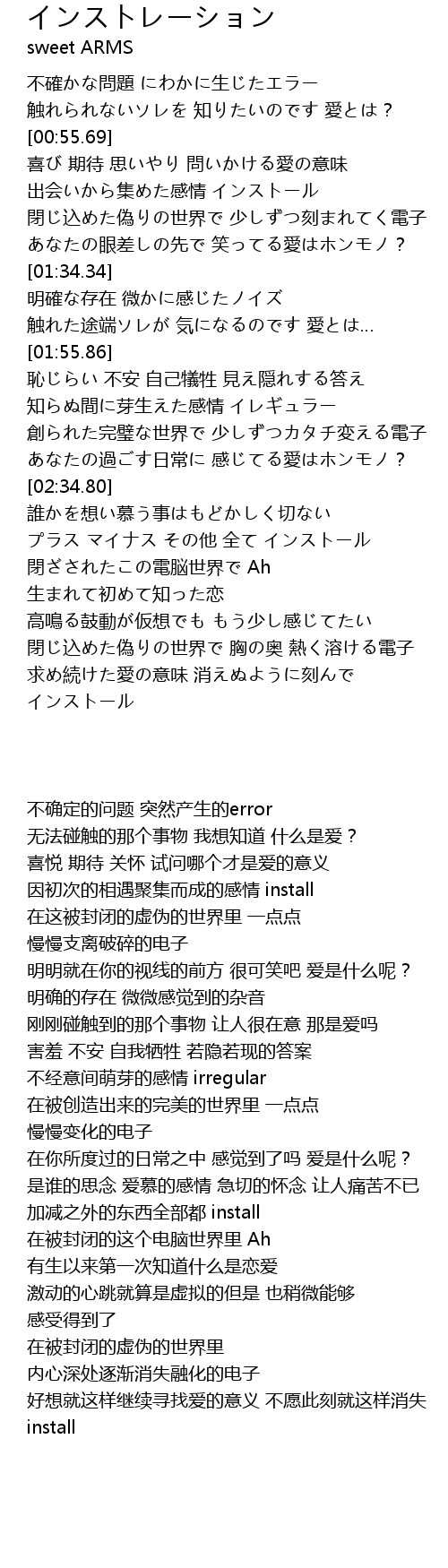 | [04:47.67] | 閉ざされたこの電脳世界で Ah 生まれて初めて知った恋 |