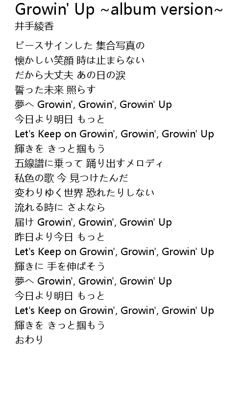 | [01:16.03] | 夢へ Growin', Growin', Growin' Up |