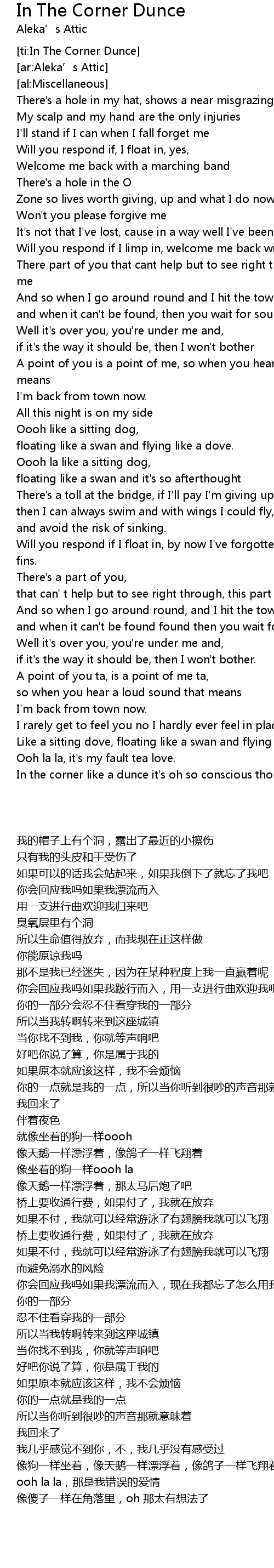 | [ti:In The Corner Dunce] | |