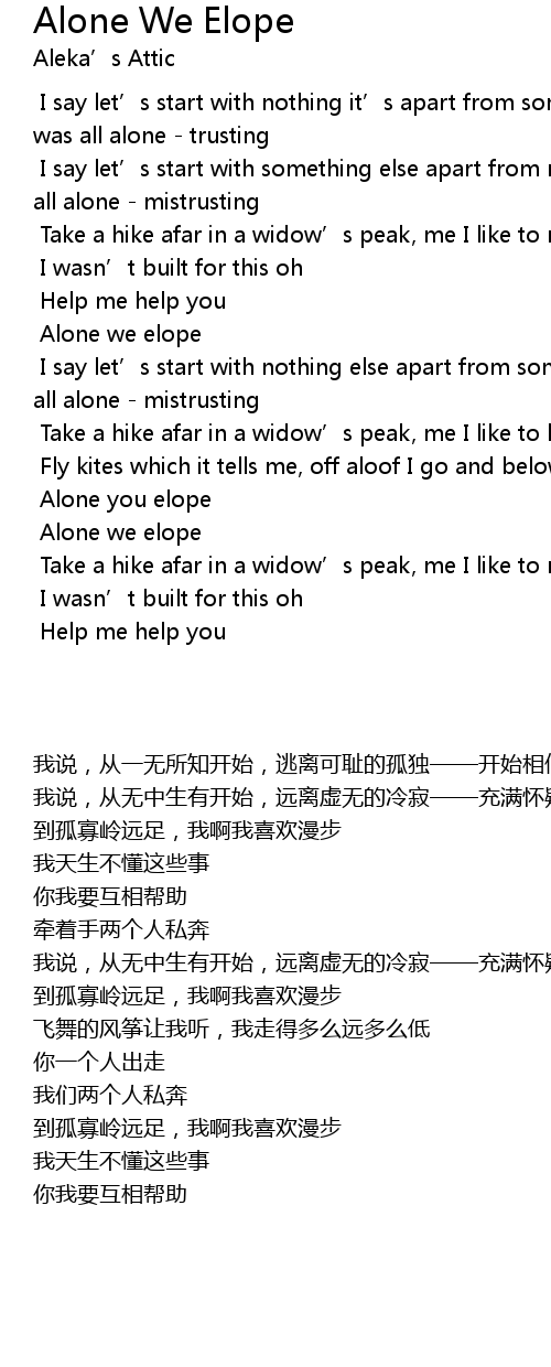| [02:32.048] | Alone we elope |