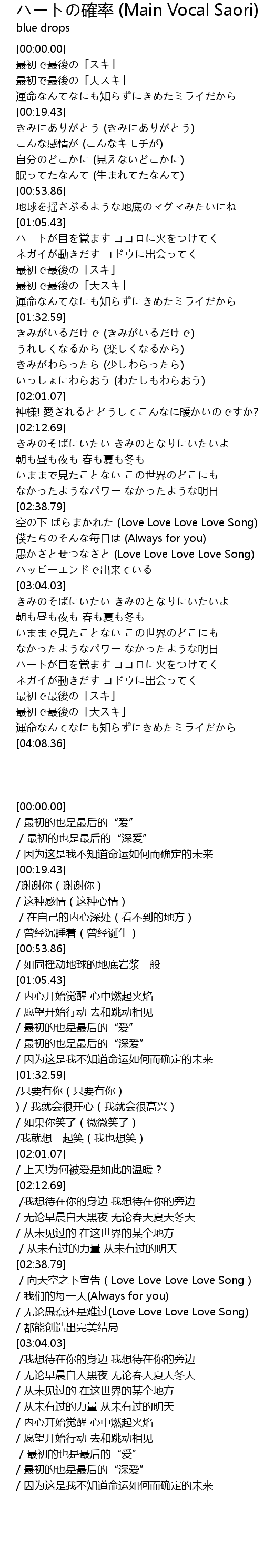 | [02:51.73] | 愚かさとせつなさと (Love Love Love Love Song) |