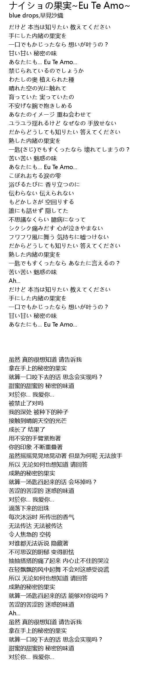 | [00:41.100] | あなたにも... Eu Te Amo... |