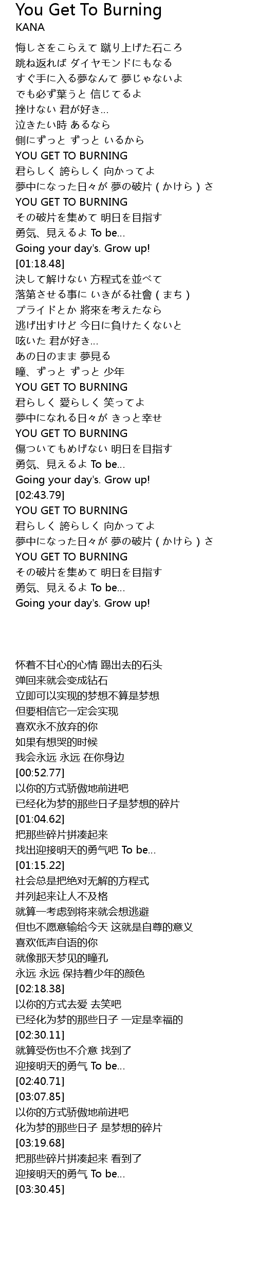 | [02:18.38] | YOU GET TO BURNING |