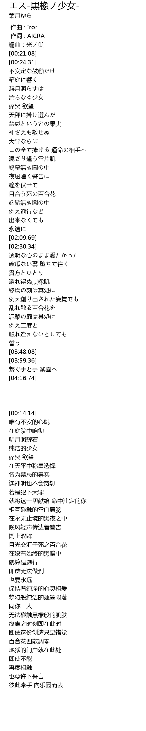 | [02:54.38] | 破瓜ない翼 堕ちて往く |