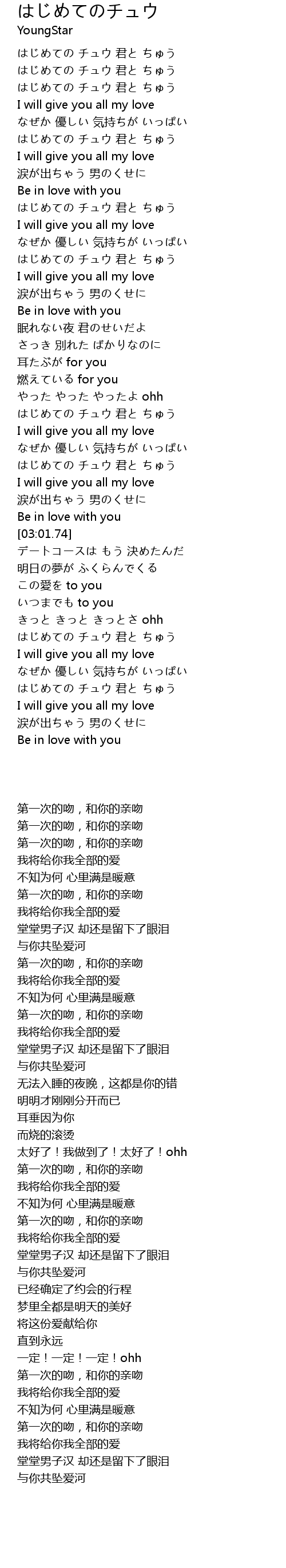 | [01:37.04] | はじめての チュウ 君と ちゅう |