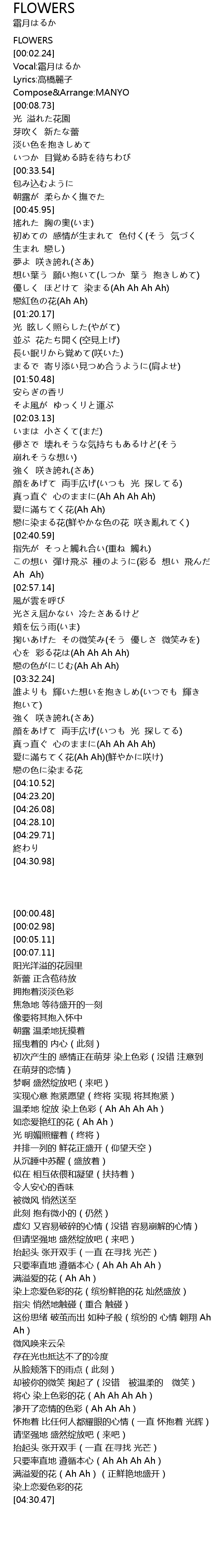 | [02:31.72] | 愛に滿ちてく花(Ah Ah) |