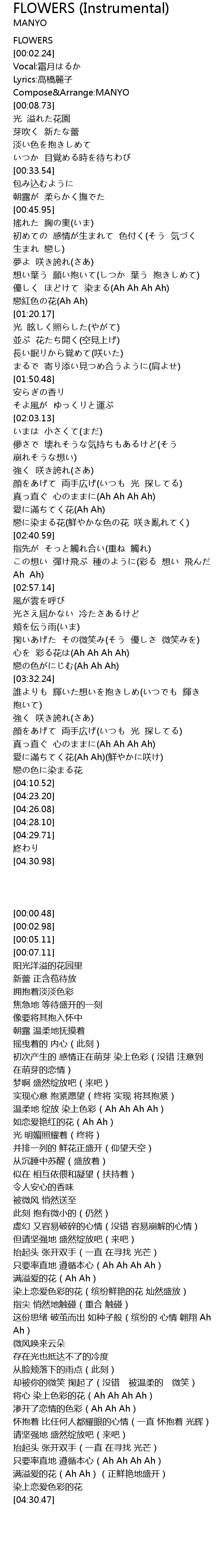 | [02:31.72] | 愛に滿ちてく花(Ah Ah) |