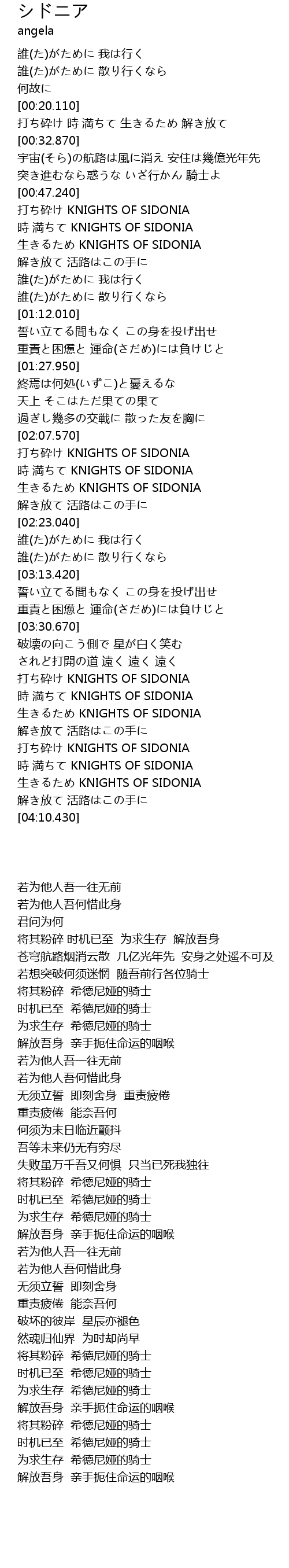 | [02:12.370] | 時 満ちて KNIGHTS OF SIDONIA |