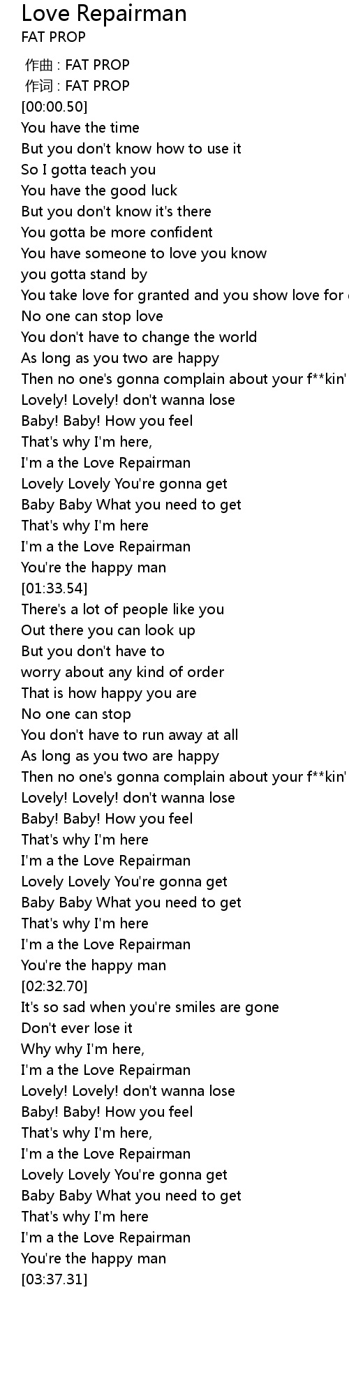 | [03:18.54] | I'm a the Love Repairman |