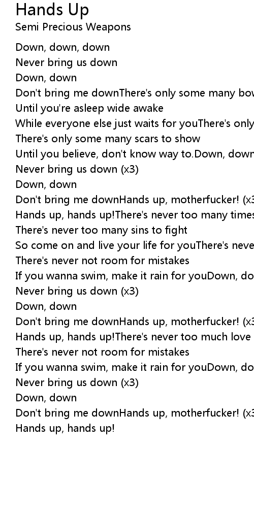 Don't bring me downHands up, motherfucker! (x3) |