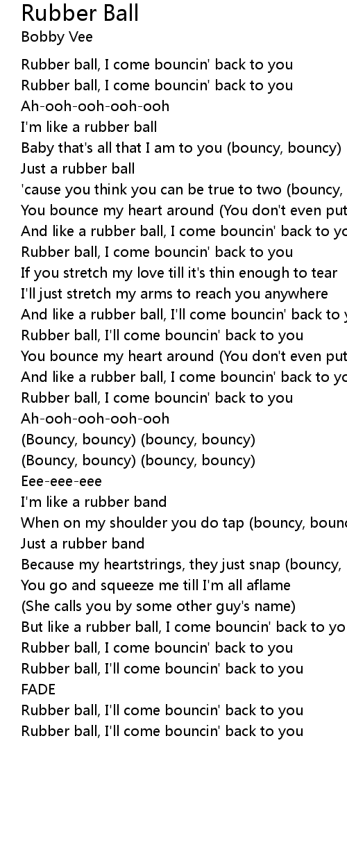 But like a rubber ball, I come bouncin' back to you |