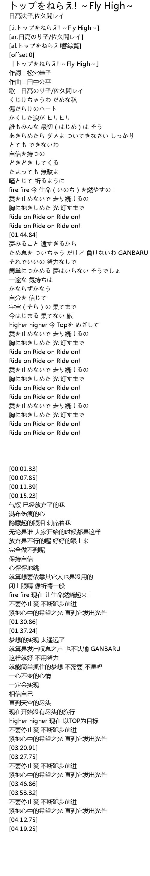 | [02:58.51] | higher higher 今 Topを めざして |