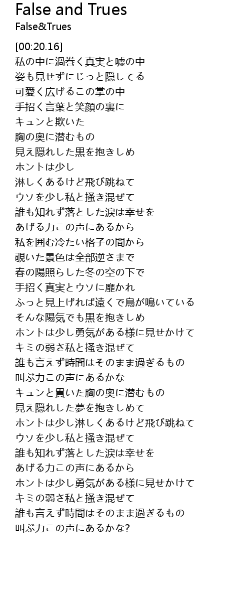 | [02:35.84] | 手招く真実とウソに靡かれ |