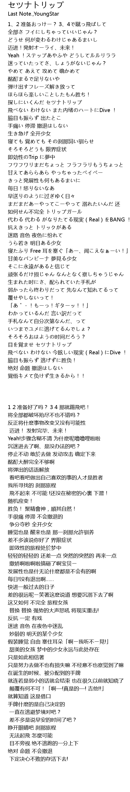 | [03:30.28] | 目を覚ませ セツナトリップ |