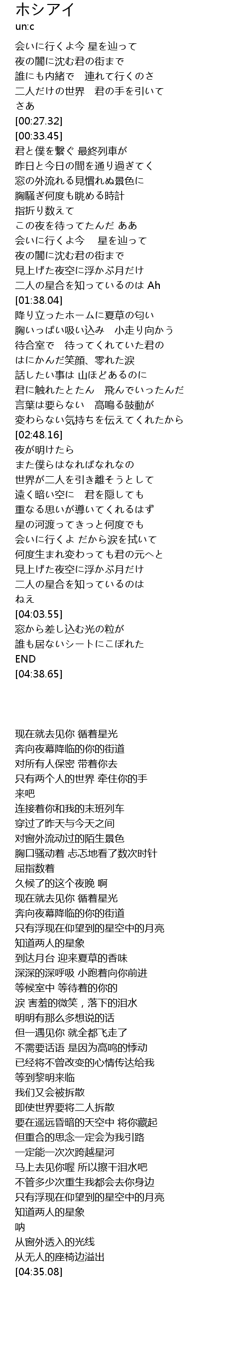 | [00:00.00] | 会いに行くよ今 星を辿って |
