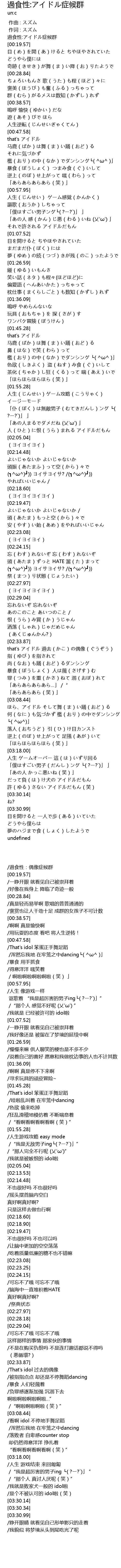 | [03:08.64] | ほら、アイドル そして舞(ま)い踊(おど)る |