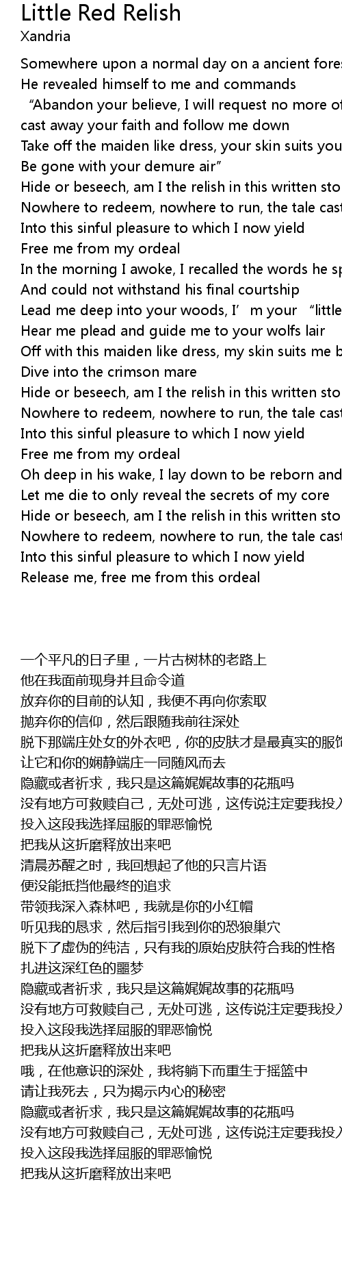 | [01:52.49] | Lead me deep into your woods, I’m your “little riding hood” |