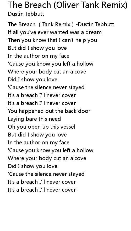 | [00:00.162] | The Breach Tank Remix Dustin Tebbutt |