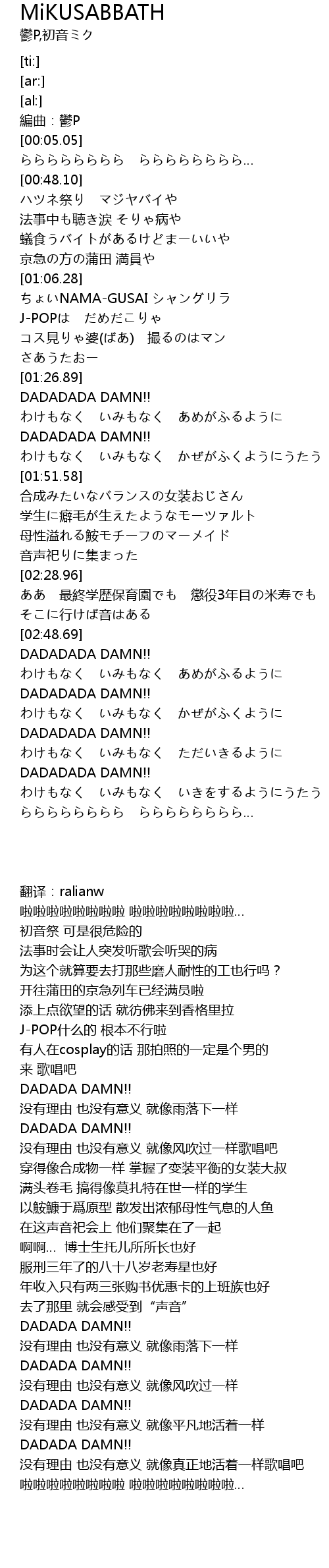 | [00:48.45] | ハツネ祭り マジヤバイや |