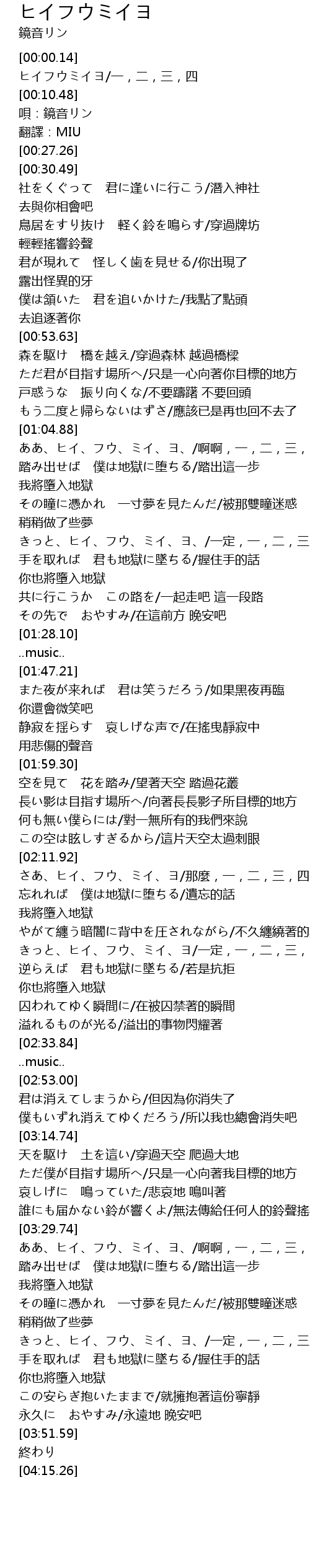 | [03:30.17] | ああ、ヒイ、フウ、ミイ、ヨ、/啊啊,一,二,三,四 |
