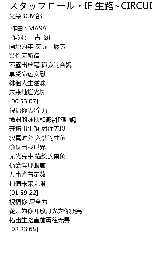 | Song | スタッフロール・IF 生路~CIRCUIT~ |