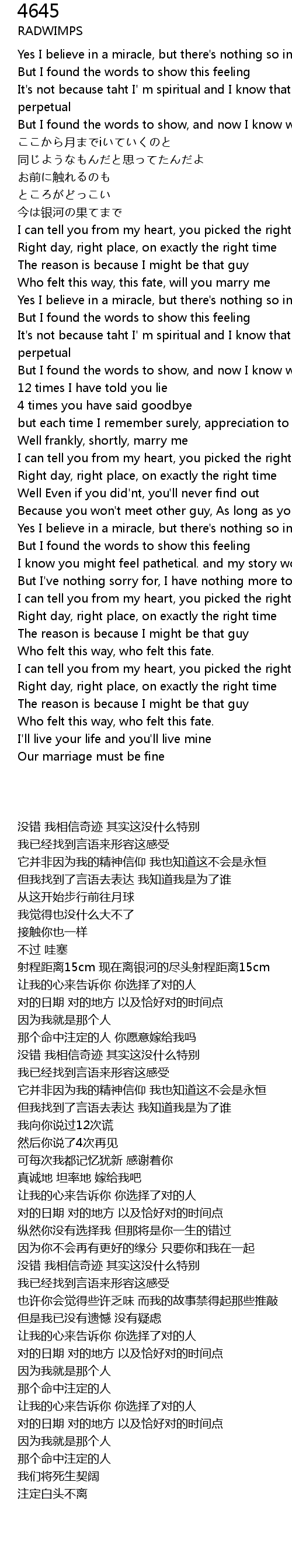 | [00:54.88] | Who felt this way, this fate, will you marry me |