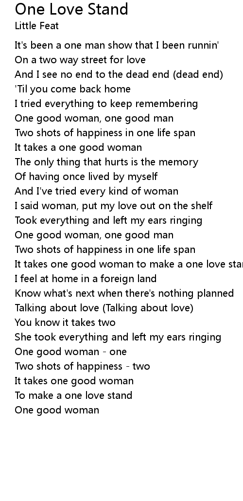 It takes one good woman to make a one love stand |