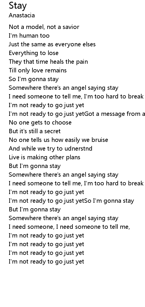 Somewhere there's an angel saying stay |