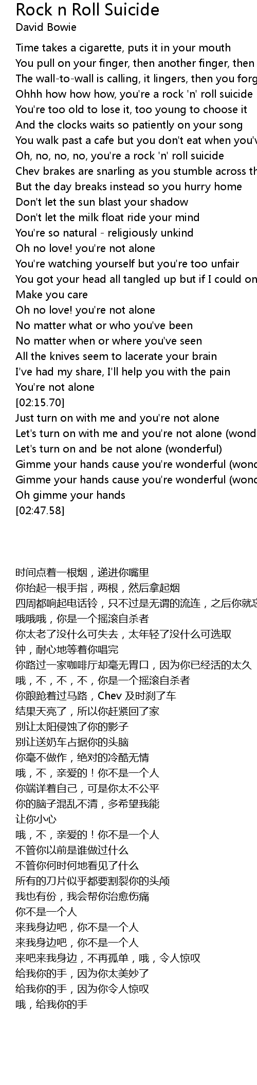 Ohhh how how how, you're a rock 'n' roll suicide |