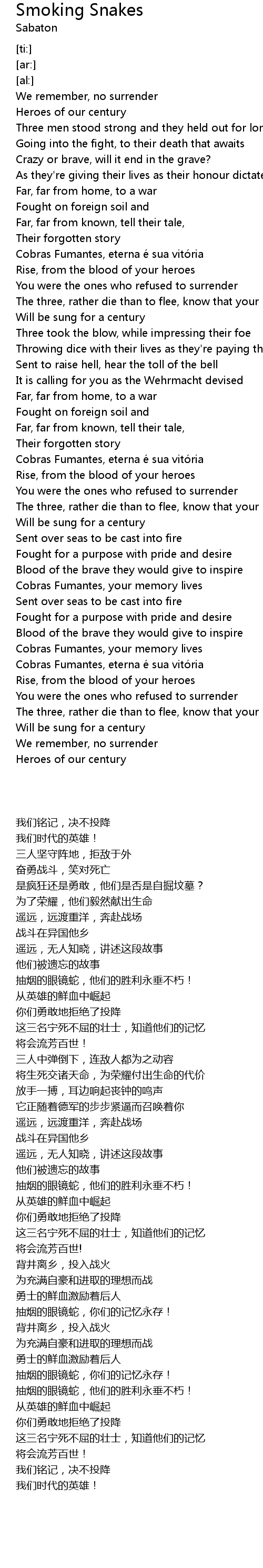 | [01:49.20] | Cobras Fumantes, your memory lives |