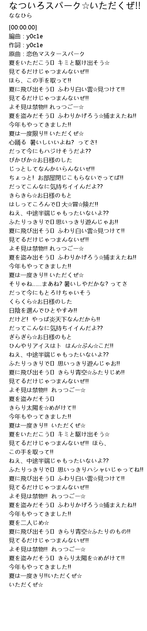 | [03:38.25] | 夏は一度きり!!いただくぜ☆ |