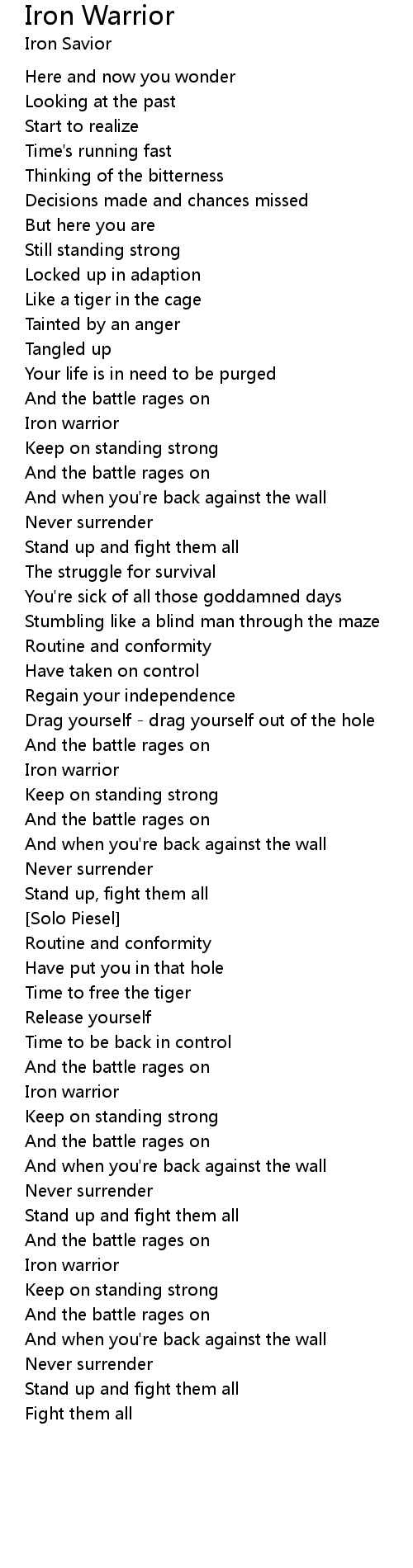 Iron Warrior Lyrics