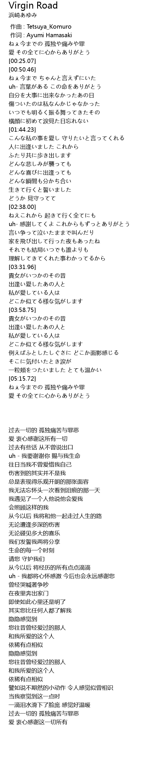 | [00:00.00] | zuò cí : Ayumi Hamasaki |