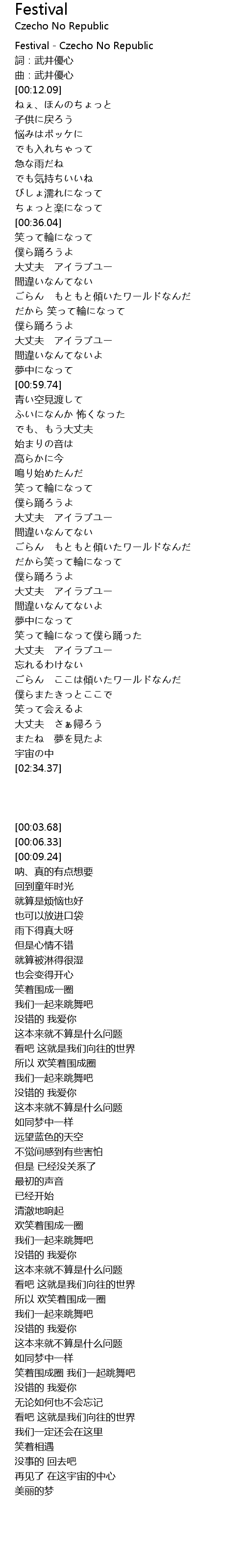 | [02:10.67] | 笑って輪になって僕ら踊った |
