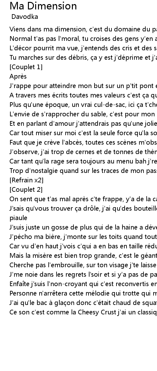 | Tu marches sur des de bris, a y est j' de prime et j' ai la t te qui flanche | |