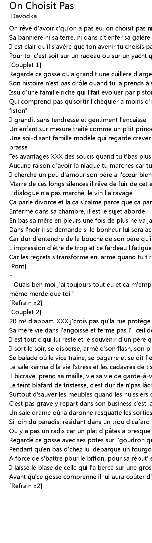 | On r ve d' avoir c' qu' on a pas eu, on choisit pas ni son pe re ni sa me re | |