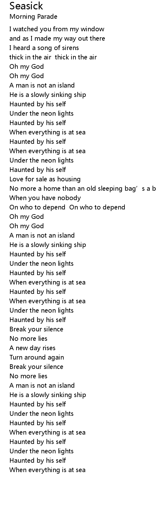 | [01:34.99] | No more a home than an old sleeping bag’s a bed |
