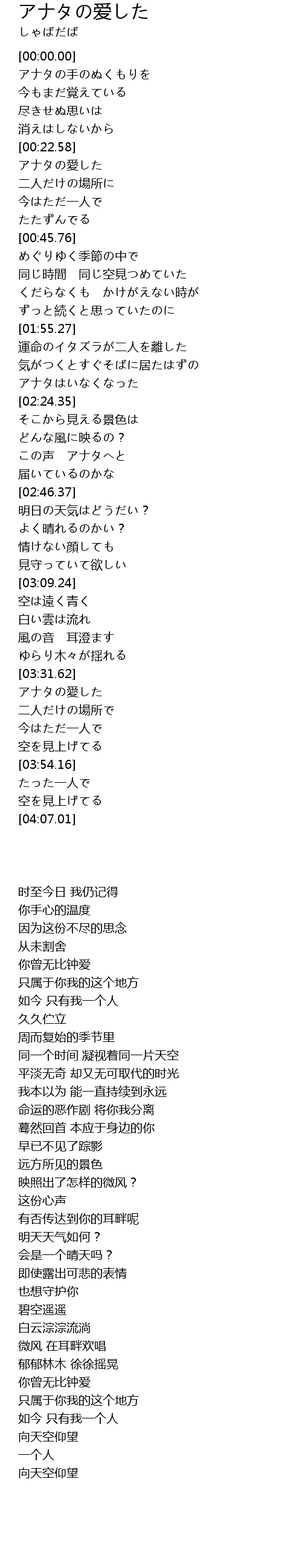 | [01:55.57] | 運命のイタズラが二人を離した |