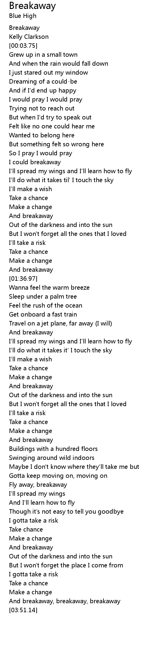 Fly away, breakaway |