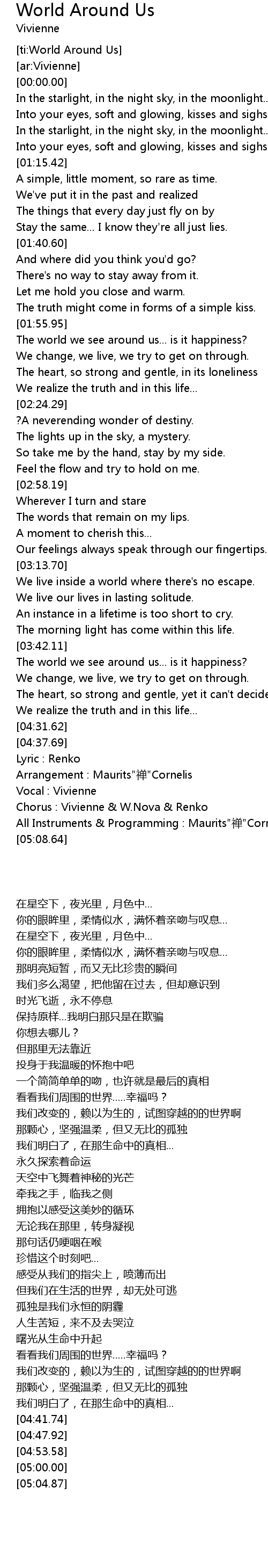 | [05:00.00] | Chorus : Vivienne & W.Nova & Renko |