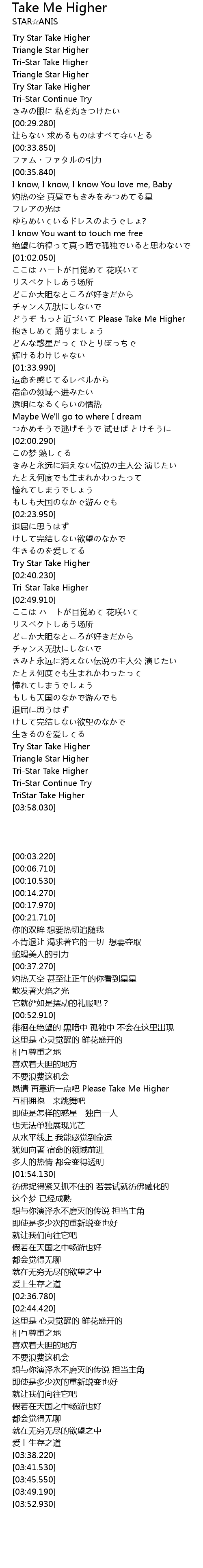| [03:38.220] | Try Star Take Higher |