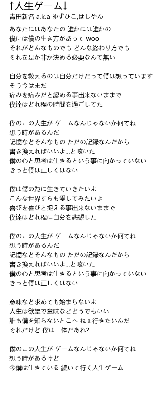 | 僕のこの人生が ゲームなんじゃないか何てね 想う時があるんだ | |
