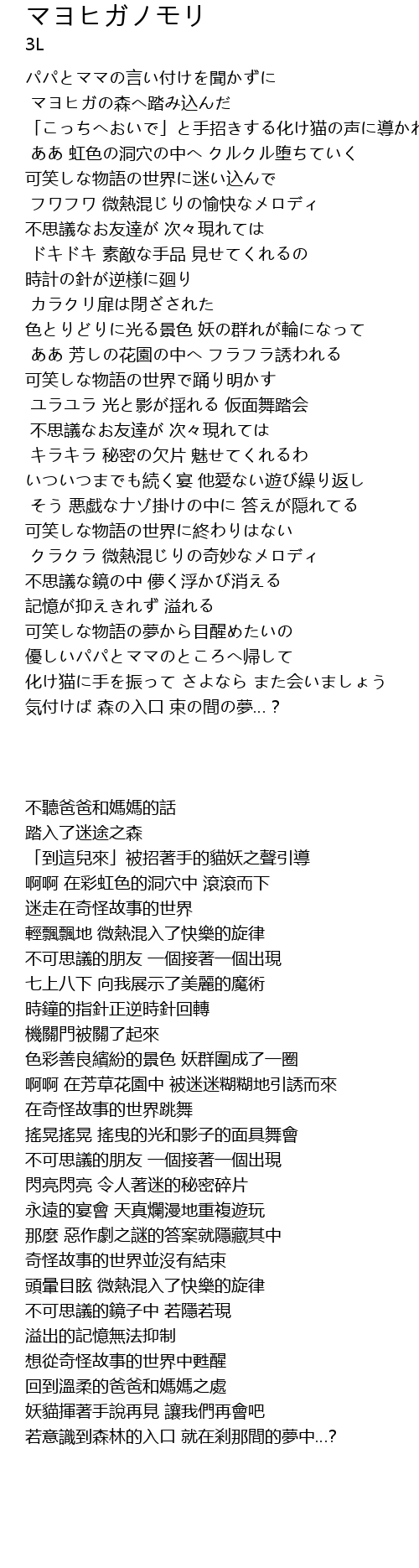 | Song | マヨヒガノモリ |