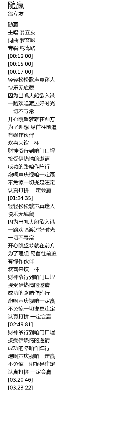 | [03:12.29] | rèn zhēn dǎ pīn yí dìng huì yíng |