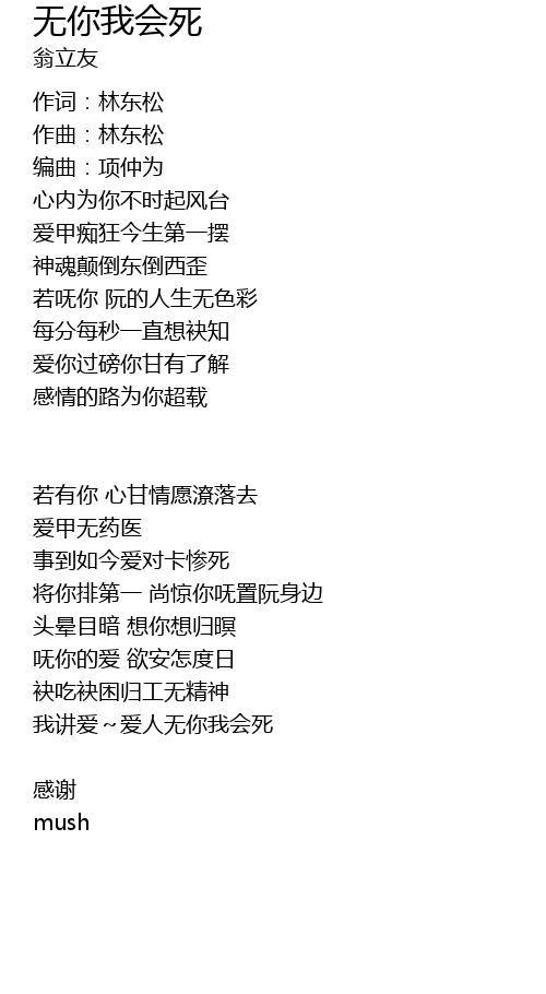 | wǒ jiǎng ài ài rén wú nǐ wǒ huì sǐ | |