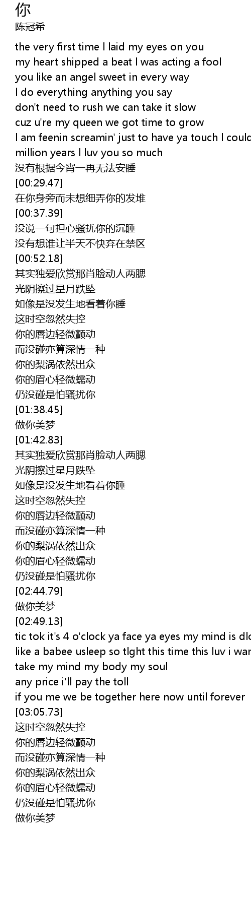 | [02:39.38] | 仍没碰是怕骚扰你 |